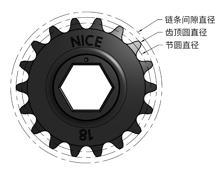 | 链条间隙直径 (Chain Clearance Diameter) | 链轮实际占用的最大空间直径,设计时要预留这个尺寸 |