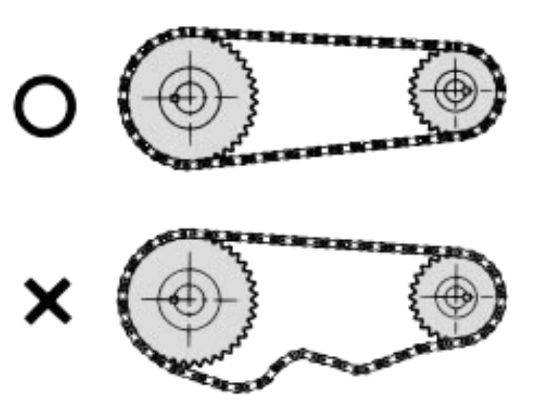 - 中心距不要太大:否则链条拉不紧